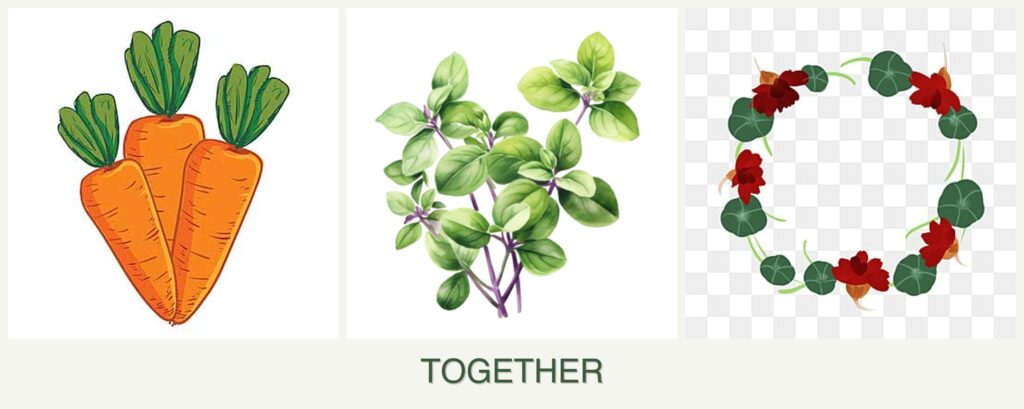Planting carrots, oregano, and nasturtiums together offers several advantages: