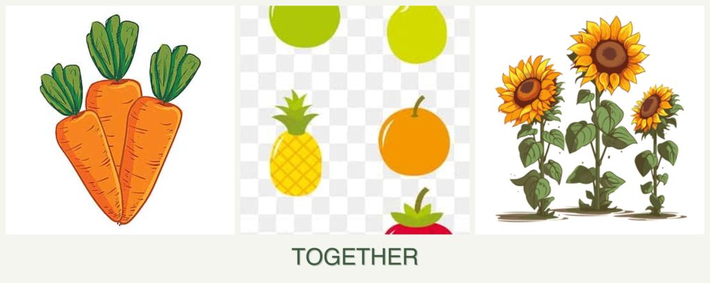 - Timing: Plant carrots in early spring or late summer, pears in spring, and sunflowers after the last frost.