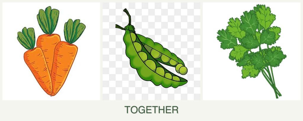 - Nutrient Needs: Peas are legumes that fix nitrogen in the soil, benefiting the nutrient needs of carrots and cilantro.