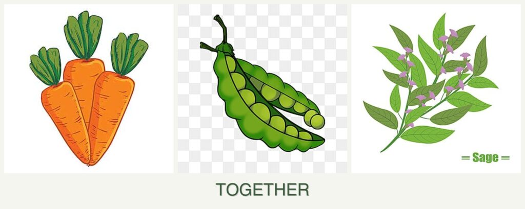 - Growth Requirements: Carrots and peas have similar needs for sunlight and water, while sage, being a hardy herb, can adapt to slightly different conditions, making it a versatile companion.