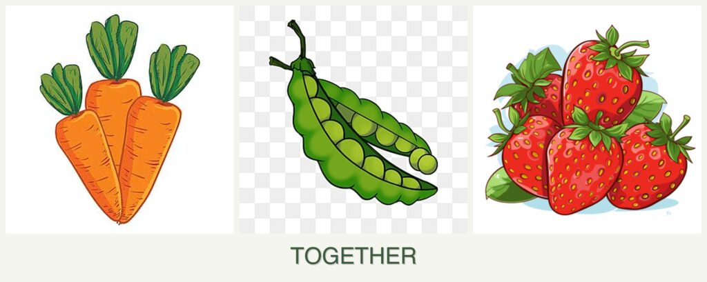 Can you plant carrots, peas and strawberries together?