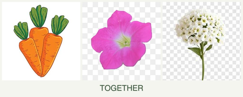 Can you plant carrots, petunias and alyssum together?