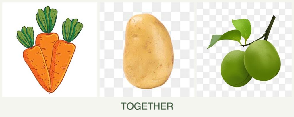 - Growth Requirements: Carrots and potatoes are root vegetables with similar soil needs, but plums are fruit trees requiring different nutrients and more space.