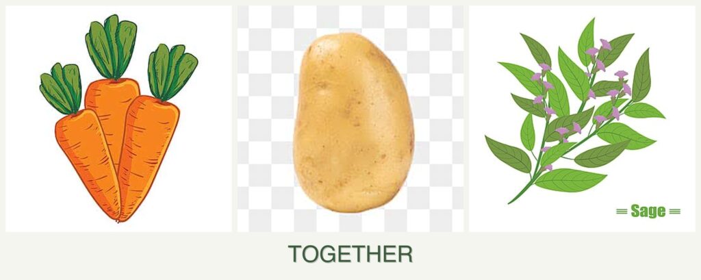 Pest Control: Sage acts as a natural pest repellent, which benefits both carrots and potatoes by deterring insects like aphids and carrot flies.