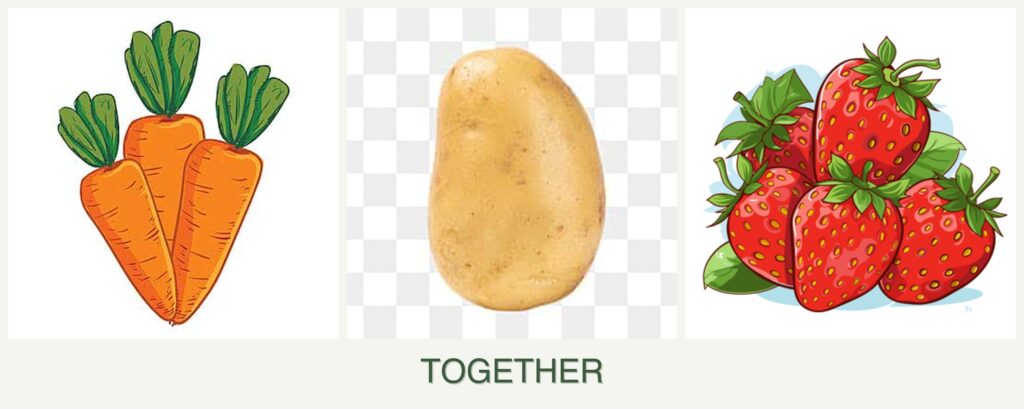 Growth Requirements: Carrots and potatoes both thrive in loose, well-draining soil, but potatoes are heavy feeders, which can deplete nutrients needed by carrots. Strawberries prefer slightly acidic soil, which might not align with the needs of the other two.