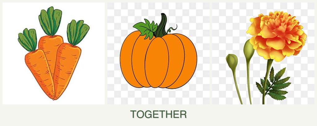 Planting carrots, pumpkins, and marigolds together can offer several advantages:
