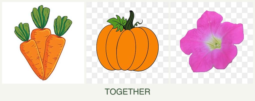 - Growth Requirements: Carrots prefer cooler temperatures and well-drained soil, pumpkins require warmth and space, and petunias need full sun.