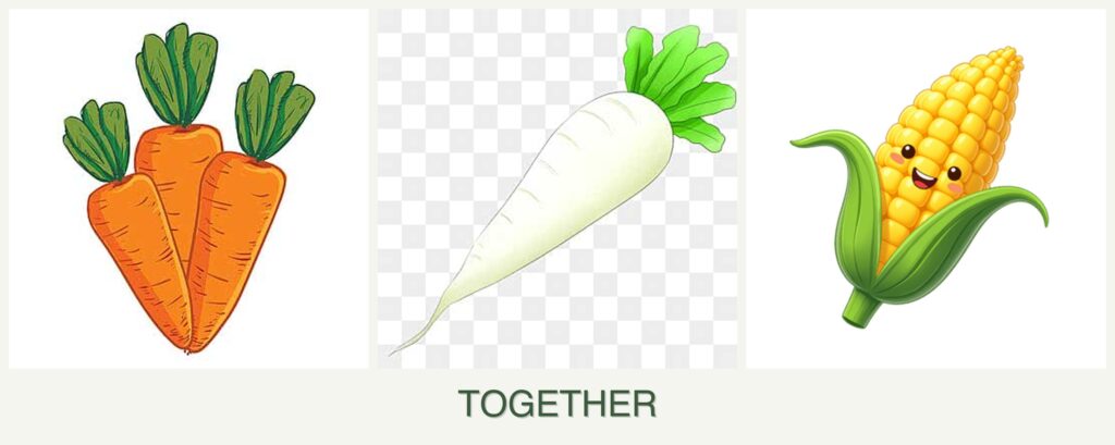 - Competition for Resources: Corn’s high nutrient demand can outcompete carrots and radishes if not managed.