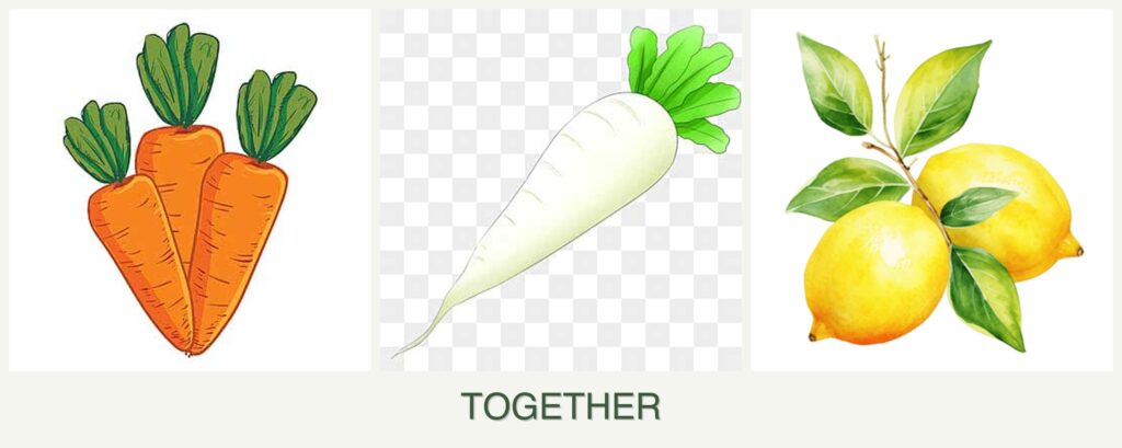 - Growth Requirements: Carrots and radishes can share a garden bed, as both prefer well-drained soil and full sun. Lemons, on the other hand, require more space and are typically grown in warmer climates.