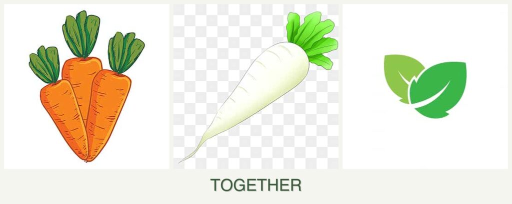 - Nutrient Needs: All three plants benefit from nutrient-rich soil, with carrots and radishes needing consistent moisture for root development.