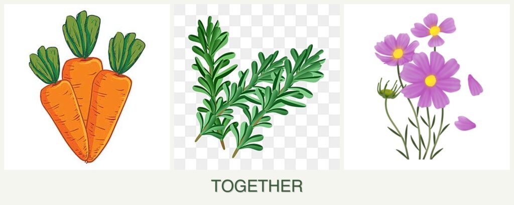 Planting carrots, rosemary, and cosmos together offers several benefits: