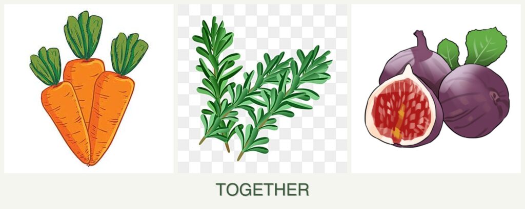 - Additional Companions: Pair carrots with onions or leeks, rosemary with sage or thyme, and figs with other Mediterranean plants.