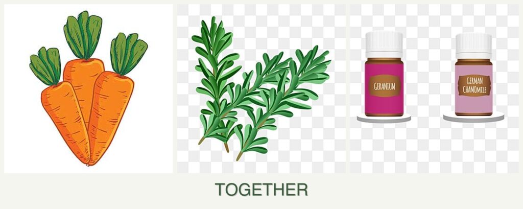 What should not be planted with carrots, rosemary, and geraniums?