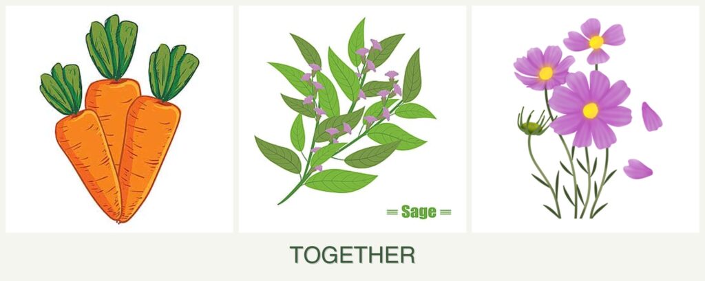 - Soil Health Benefits: Sage and cosmos improve soil structure, benefiting carrot roots.