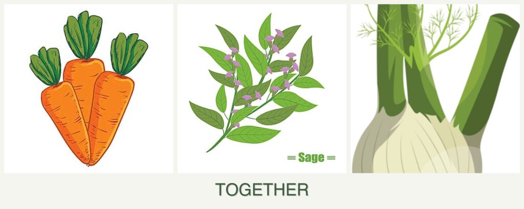 Can you plant carrots, sage, and fennel together? The short answer is no. While carrots and sage can be good companions, fennel is generally not recommended to be planted with either.