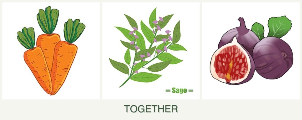 - Nutrient Needs: Carrots and figs have different nutrient requirements, but sage can thrive in less fertile soil, making it a good companion.