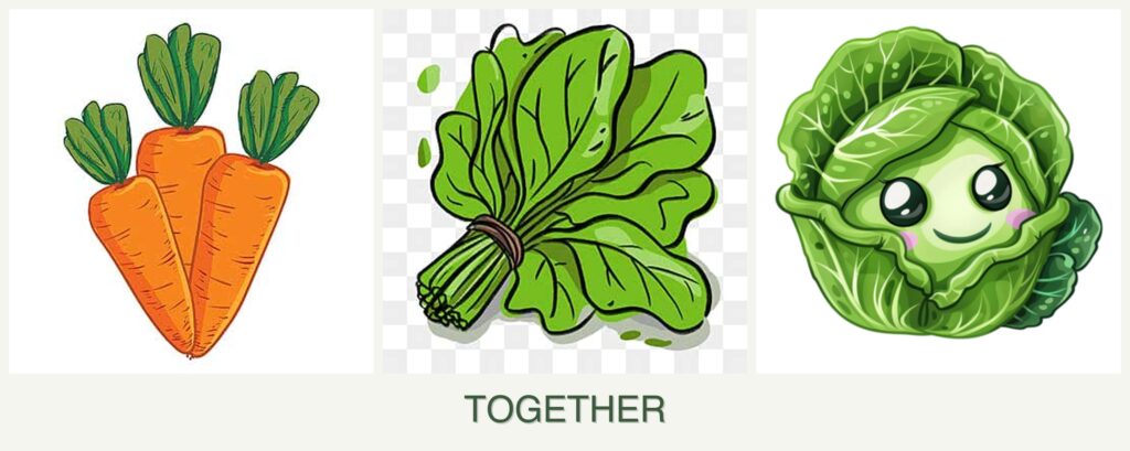 - Growth Requirements: Carrots prefer loose, sandy soil, which also benefits cabbage roots, while spinach thrives in nutrient-rich soil.