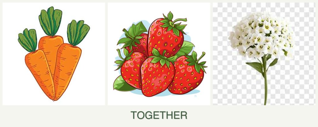 Planting carrots, strawberries, and alyssum together offers several benefits: