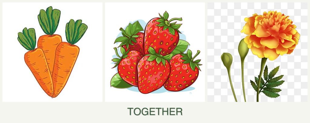 Planting carrots, strawberries, and marigolds together offers several advantages: