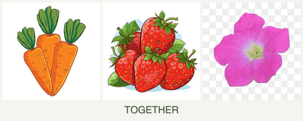 Can you plant carrots, strawberries and petunias together?