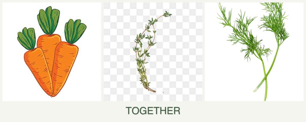 - Spacing: Carrots require more underground space, while dill and thyme can be planted closer together due to their different growth habits.