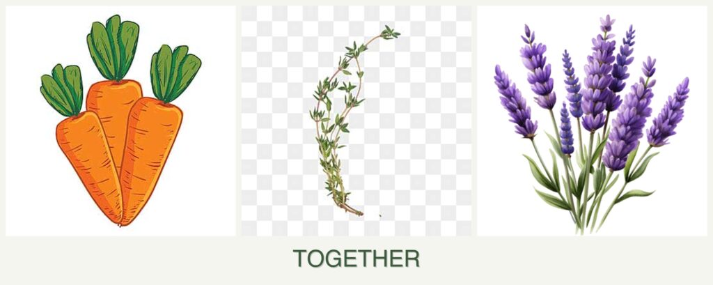 Planting carrots, thyme, and lavender together offers several advantages:
