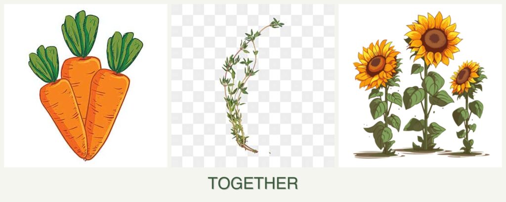 Can you plant carrots, thyme and sunflowers together?