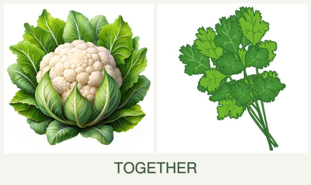 - Pest Control: Cilantro can repel pests that affect cauliflower.