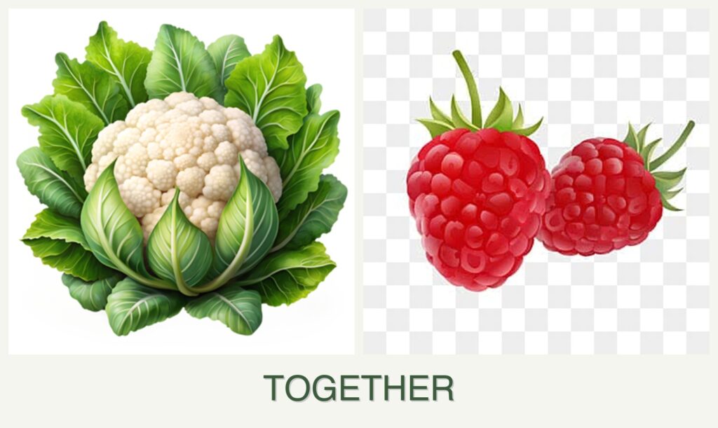 - Companion Plants: Consider planting cauliflower with onions or garlic, which can deter pests, and raspberries with clover or legumes, which improve soil nitrogen levels.