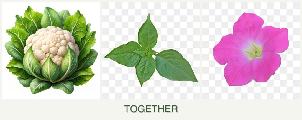 - Growth Requirements: Cauliflower, basil, and petunias have similar sunlight and soil needs, making them compatible in terms of environmental conditions.