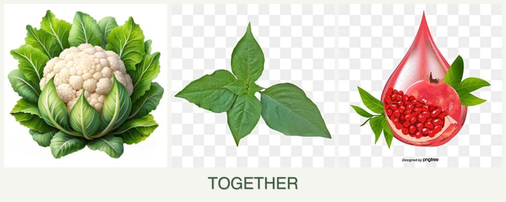 While cauliflower, basil, and pomegranates are not ideal companions, there are benefits to planting compatible plants together: