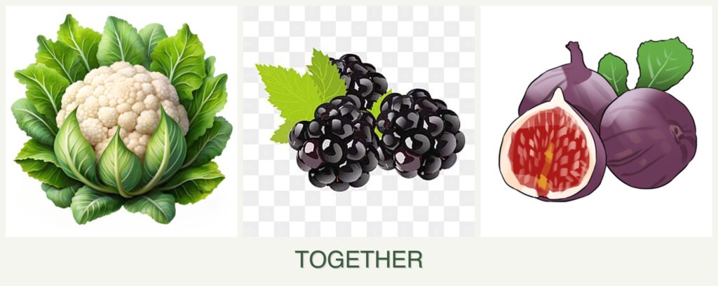 - Resource Competition: Figs and blackberries can overshadow and outcompete cauliflower for sunlight and nutrients.
