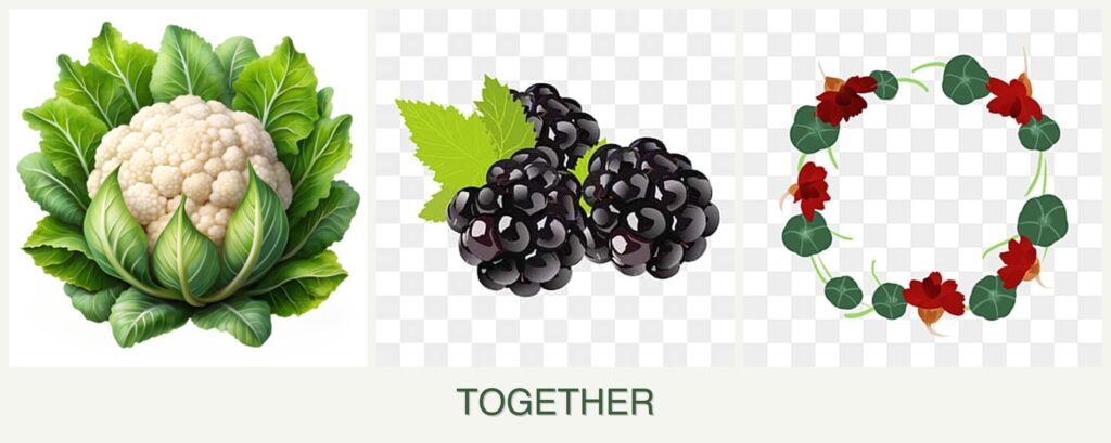 - Nutrient Needs: Cauliflower and nasturtiums have similar soil nutrient requirements, but blackberries require slightly different soil conditions.