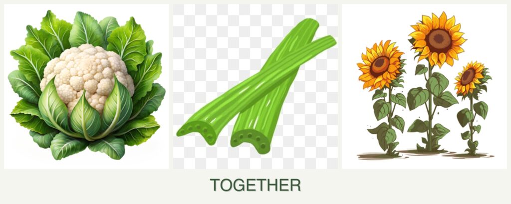 Can you plant cauliflower, celery and sunflowers together?