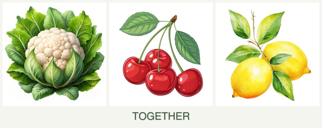 Pollinator Attraction: Cherries and lemons can attract pollinators, which may benefit cauliflower indirectly.