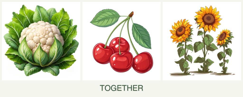 Can you plant cauliflower, cherries and sunflowers together?