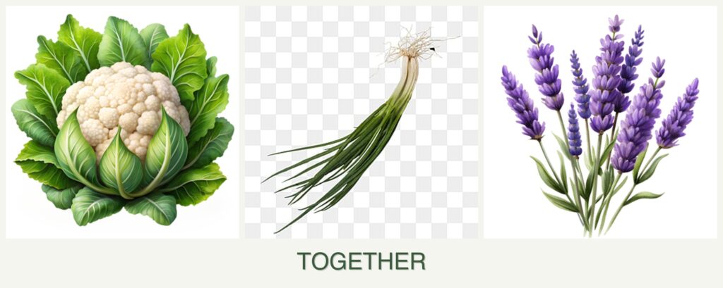 - Pest Control: Chives repel aphids, and lavender attracts beneficial insects, both aiding cauliflower.