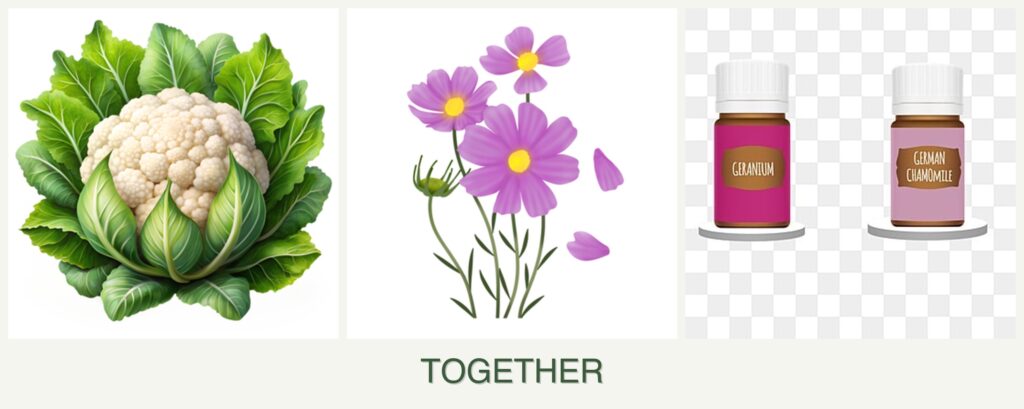 - Harvesting Considerations: Cauliflower requires space for harvesting, which can be challenging if cosmos or geraniums are too close.