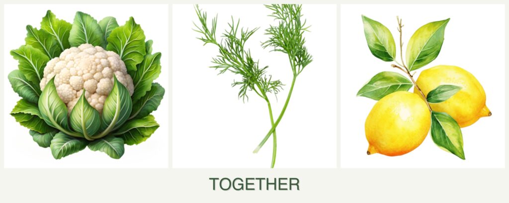 While planting cauliflower, dill, and lemons together isn’t ideal, some benefits could be considered in a broader companion planting strategy: