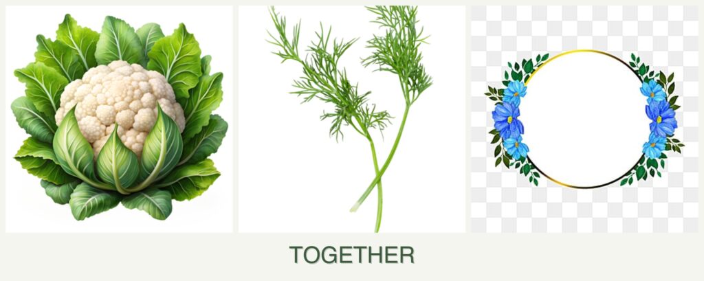- Resource Competition: Cauliflower’s high nitrogen needs might compete with dill and zinnias if soil is not adequately enriched.