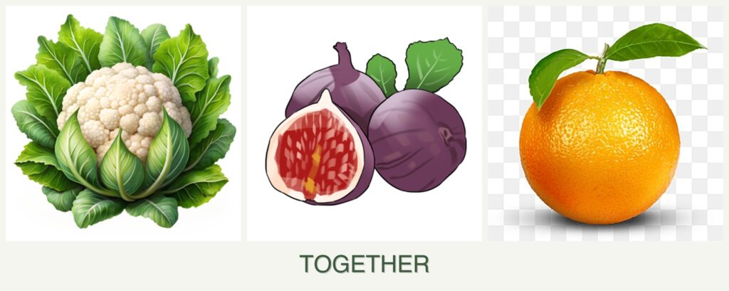Can you plant cauliflower, figs and oranges together?