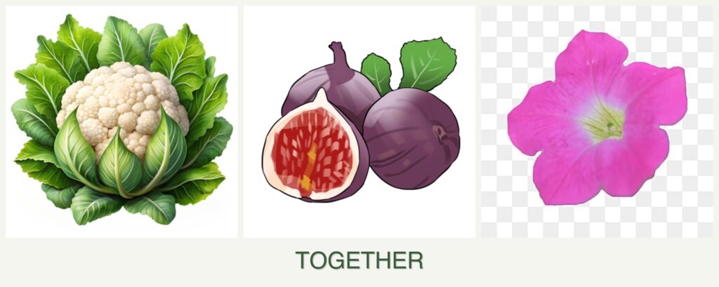 While planting cauliflower, figs, and petunias together isn’t ideal, each plant can offer benefits in a suitable companion planting arrangement: