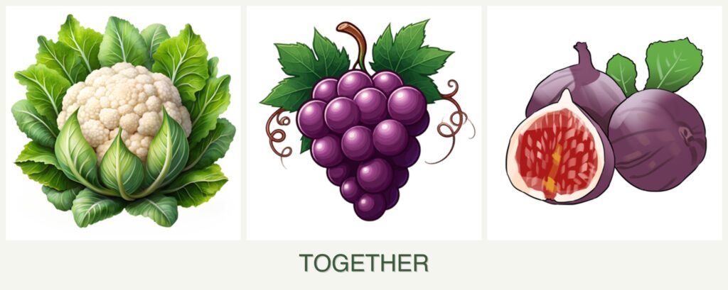 While planting cauliflower, grapes, and figs together isn’t ideal, combining them with other suitable companions can offer benefits: