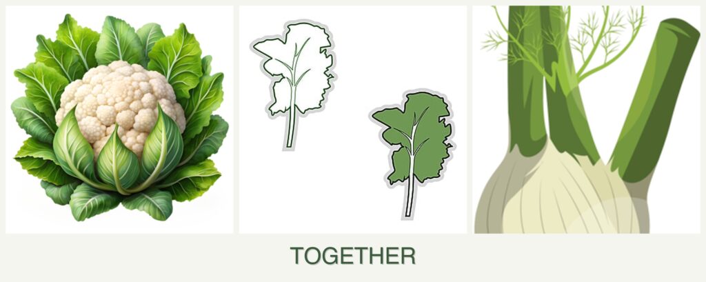 Nutrient Needs: All three plants require rich soil, but fennel’s nutrient demands can compete with those of kale and cauliflower, potentially leading to resource competition.