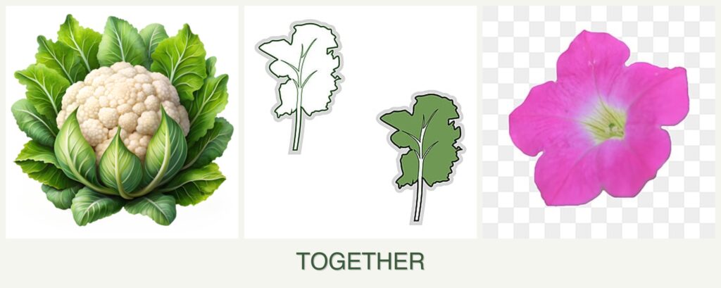 Planting cauliflower, kale, and petunias together offers several benefits: