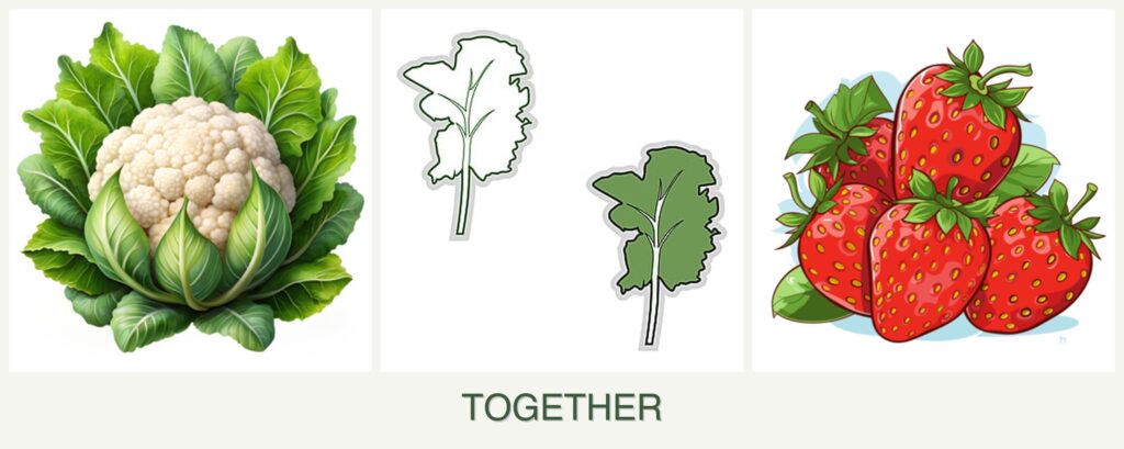 - Growth Requirements: Cauliflower and kale are both members of the Brassica family and have similar needs, such as cool weather and rich soil. Strawberries, while different, can complement these vegetables by filling in spaces and providing ground cover.