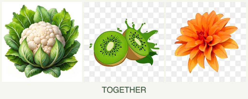 - Compatible Companions: Consider pairing cauliflower with onions or beans, kiwi with companion vines like grapes, and dahlias with other sun-loving flowers.