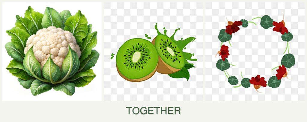 Can you plant cauliflower, kiwi and nasturtiums together?