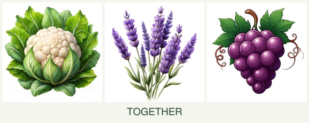 The short answer is: No, cauliflower, lavender, and grapes are not ideal companions. Here’s why: