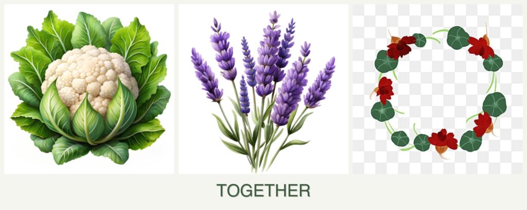 - Pest Repellent Properties: Lavender’s strong scent can deter insects, while nasturtiums act as a trap crop for aphids, protecting cauliflower.